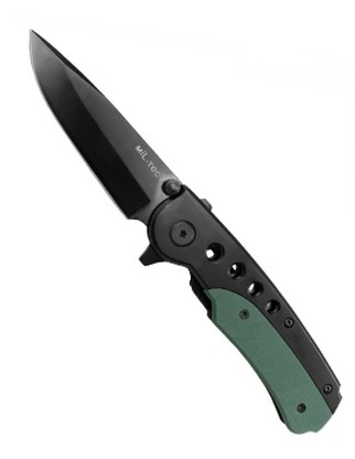 MIL-TEC BLACK/OD ONE-HAND KNIFE WITH CLIP