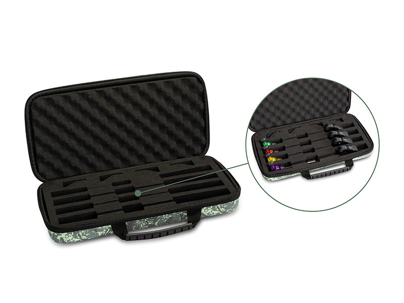 Υπάρχουν τέσσερις ευέλικτες εγκοπές στον σκληρυμένο αφρό για τους δείκτες δαγκώματος όπως CARPY, TRYO, SKIPER, αλλά και για παρόμοιους δείκτες που διατίθενται στην αγορά. Το επάνω μέρος έχει αφρώδες υλικό που κρατά τους δείκτες στη θέση τους, ώστε να μην καταστραφούν ή να πέσουν κατά τη μεταφορά.