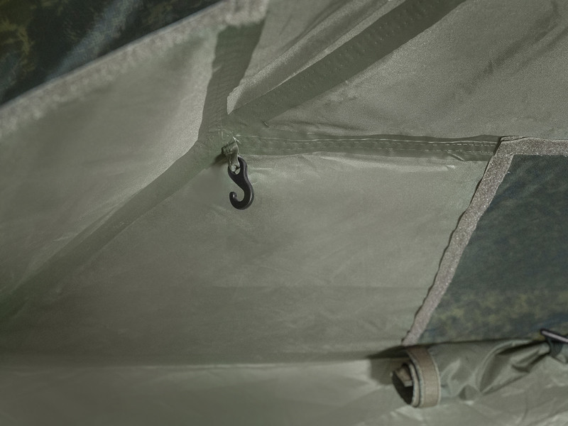Another big advantage is an elaborate ventilation system that consists of several windows and a cover. A spacious mosquito window is placed on both front and back panel, and four smaller windows are directly on the bivouac ceiling. This way, the air can flow inside when you can’t air out the whole bivouac using big windows. You’ll surely appreciate it at night, when it will help to decrease the condensation on inner walls. A hood above the entrance provides additional protection from the sun and the rain. The roof is attached to the whole structure by a number of clips to avoid any unnecessary movement due to wind. CUBICON also has 4 stabilising guy lines and pegs included in the package, and a standard floor fixed with a quality zip around the perimeter. No more dirt or unwanted visits from rodents!