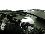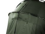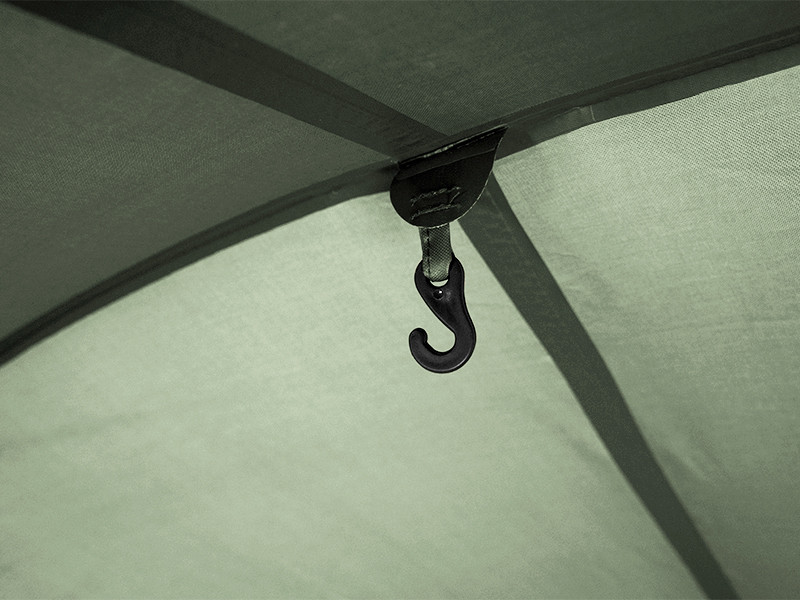 The bivouac is big enough to fit two beds inside while still providing enough space for movement, for your bags, and everything you need for an enjoyable stay by the water. The space inside can accommodate even three beds if needed. This bivouac is fitted with two straps to attach the rods and with a big hood to protect you from the sun and the rain. Inside, you can find two hooks on the ceiling to attach a lamp or other accessories.