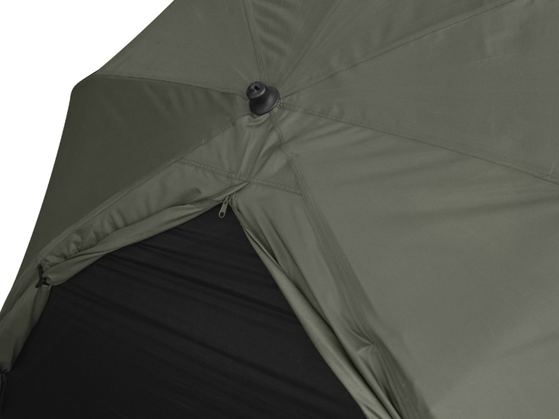 Brolly is designed to accommodate a single bed while still having a lot of space inside for a chair, bags, or other equipment. A hood above the entrance safely deflects the water from entering your brolly. Big mosquito windows on the front panel and a huge window in the back improve the air circulation, making it comfortable even on hotter summer days. In case of bad weather, all the windows can be closed.