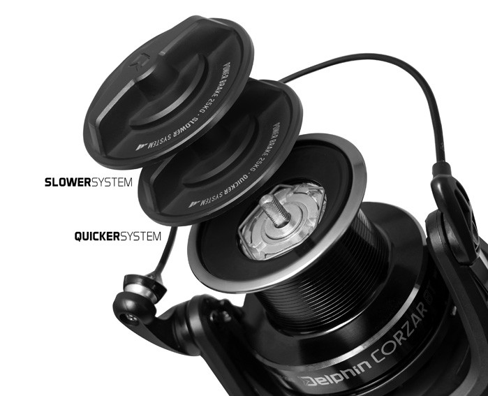 Μαζί με το σύστημα αντιστροφής, ο μηχανισμός CORZAR προσφέρει ένα ευρύ φάσμα επιλογών ρύθμισης ισχύος όταν παλεύετε με ένα ψάρι. Πλεονέκτημα του μηχανισμού είναι επίσης η λαβή ασφαλείας ρήψης, η οποία εμποδίζει την ακούσια περιστροφή της κεφαλής όταν το τόξο έχει κλίση σε μια συγκεκριμένη θέση και ενδεχομένως να κόψει την πετονιά κατά τη ρήψη. Το μεταλλικό καρούλι μπορεί να χωρέσει μια αρκετά μεγάλη ποσότητα πετονιάς, γεγονός που το καθιστά ένα ευέλικτο καρούλι για όλους τους τύπους νερού.