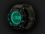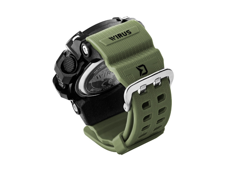 Rubber strap is comfortable to touch and can be adjusted to a great size which means the watch fits every wrist perfectly. The dark green strap matches the surrounding environment. The case of the watch is black and robust, with high resistance to external mechanical damage.