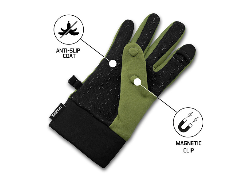 Αυτά τα εξαιρετικά πρακτικά γάντια που έχουν σχεδιαστεί για ψάρεμα σε πιο κρύες περιόδους είναι εξοπλισμένα με αναδιπλούμενο άκρο δακτύλου στον αντίχειρα και στο δείκτη. Το δίπλωμα μπορεί να στερεωθεί με ένα καινοτόμο σύστημα μαγνητών ραμμένο ανάμεσα σε δύο στρώματα υφάσματος.