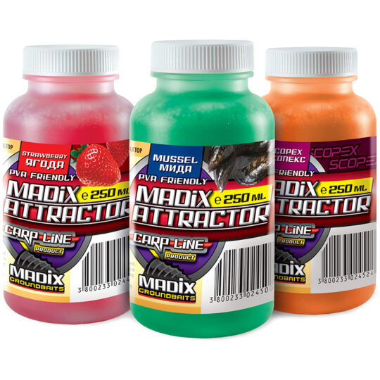 High concentrated attractor contains natural aromas, sweeteners, essential oils and amino acids. Suitable for use with groundbait and pellets, also as a dip for baits like corn, boilies, pellets.