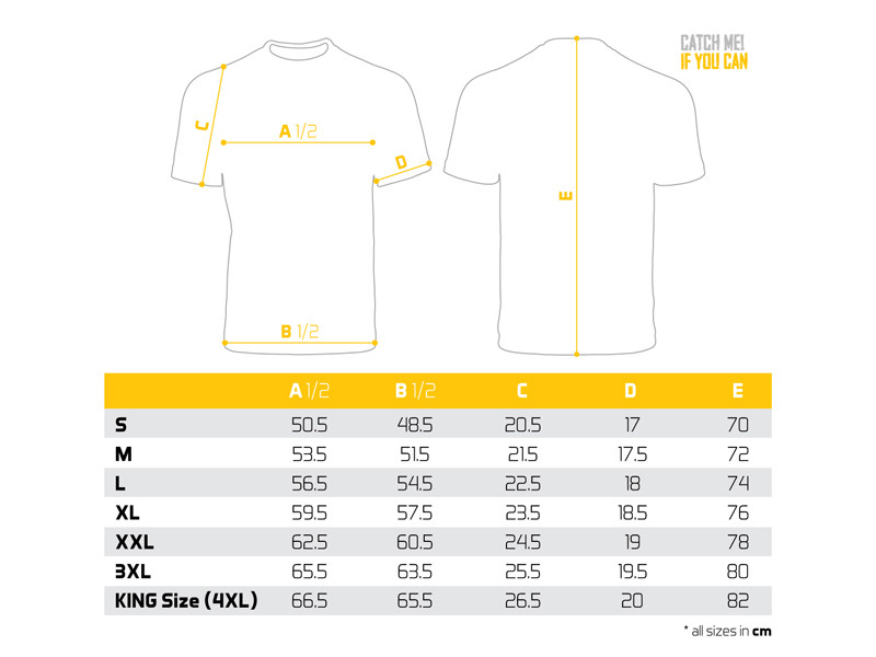 Both the T-shirt and the print are of high quality. It’s available in a wide size range from S to KING SIZE (equivalent of 4+XL, commonly known as XXXXXL). The King size model will be perfect for people around 135+ kg.